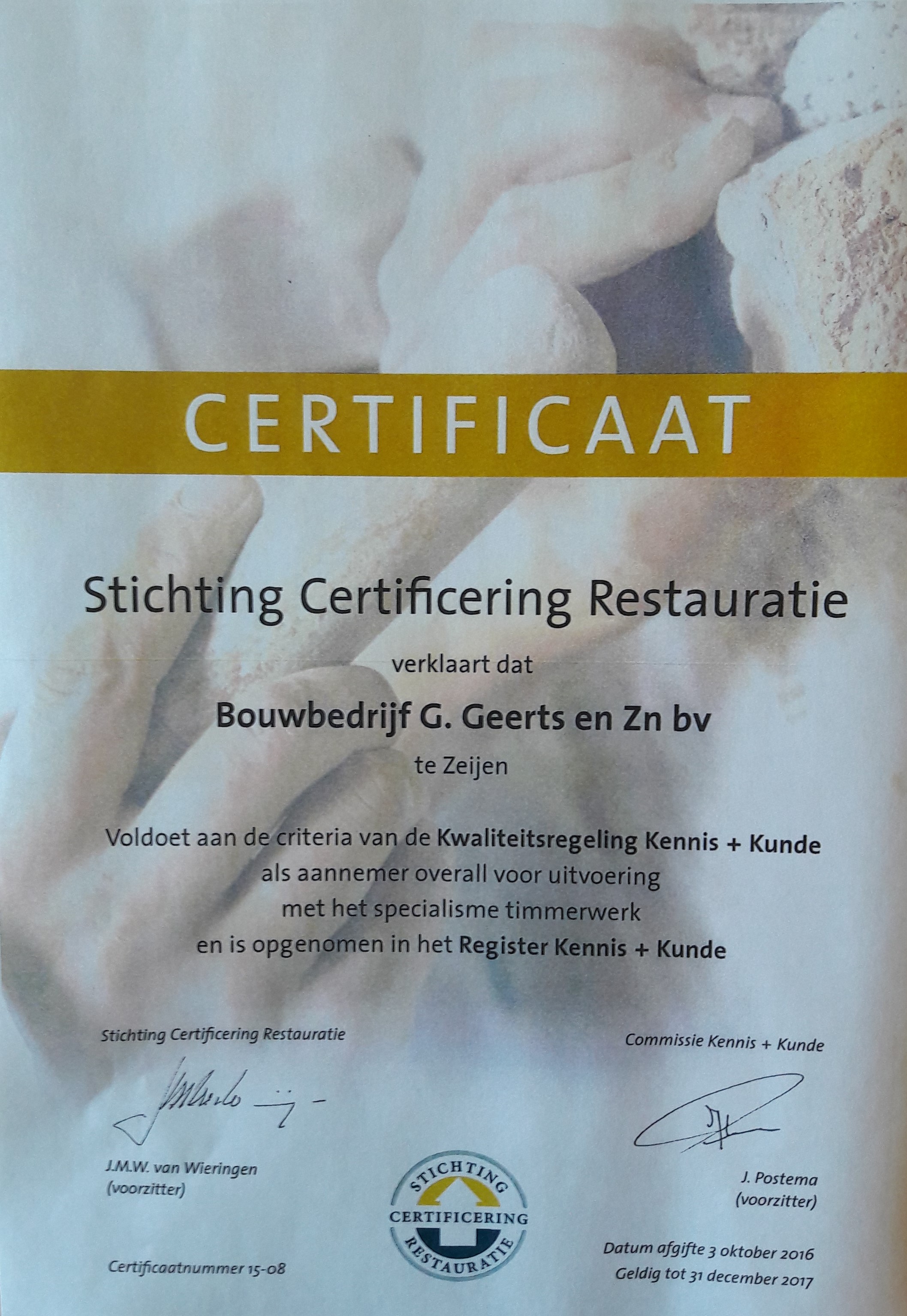 Bouwbedrijf Geerts is aangesloten bij de Vereniging Restauratie Noord.